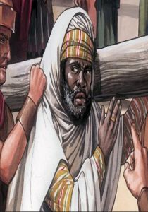 Simon of Cyrene helps Jesus carry his Cross